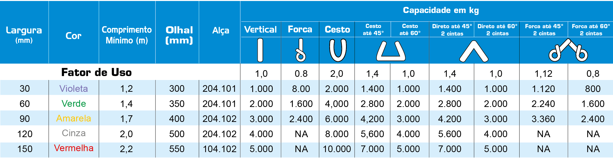 – Consulte proteções extras para os olhais e as proteções disponíveis para o corpo das cintas para elevação de carga.