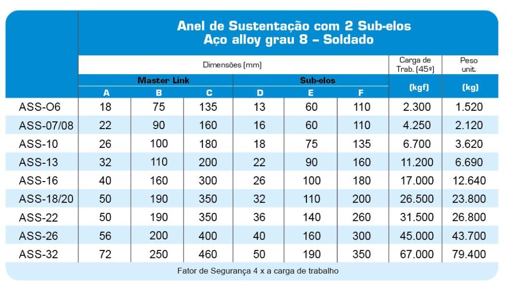 São conectores utilizados principalmente em correntes e cintas de poliéster. São utilizados na confecção de lingas de corrente, pois facilitam a montagem de diversos acessórios por serem versáteis e práticos, além de evitarem cortes desnecessários nos elos das correntes.