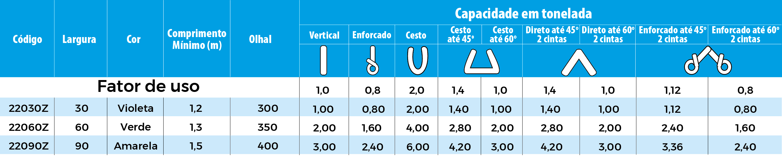 – Consulte proteções extras para os olhais e as proteções disponíveis para o corpo das cintas para elevação de carga.